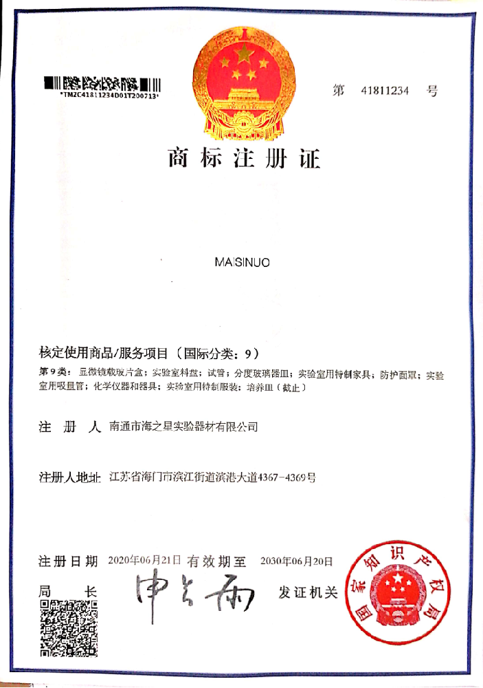 公司因發(fā)展需要,注冊麥斯諾英文商標(biāo)——“Maisinuo”實驗室,